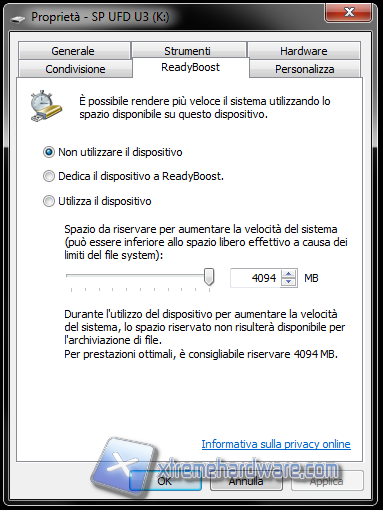 L'unità è predisposta per essere utlizzata in modalità Ready Boost, la quale non è altro che una è una tecnologia di disk caching presentata inizialmente per il sistema operativo Microsoft Windows Vista e disponibile nei sistemi operativi successivi come Windows 7. Lo scopo è rendere i computer che hanno installato tali sistemi operativi più veloci e reattivi usando appunto memorie di tipo flash memory come penne USB, SD card, CompactFlash ed altri tipi.