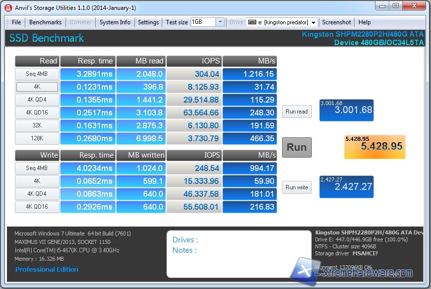 A seguire i grafici con i valori ottenuti dall’HyperX Predator da 480GB.